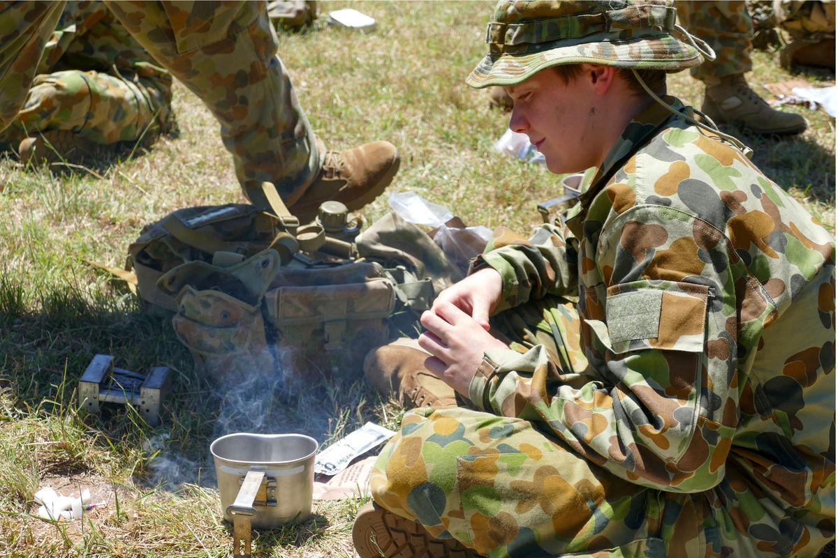 Over the weekend, the Recruit cadets learnt essential living in the field skills such as observation and movement, navigation at night and survival skills such as fire, water and shelter construction. One of the highlights was cooking meals on hexamine stoves, where the Recruits learned how to prepare their ration pack in a wilderness situation, honing valuable survival skills.