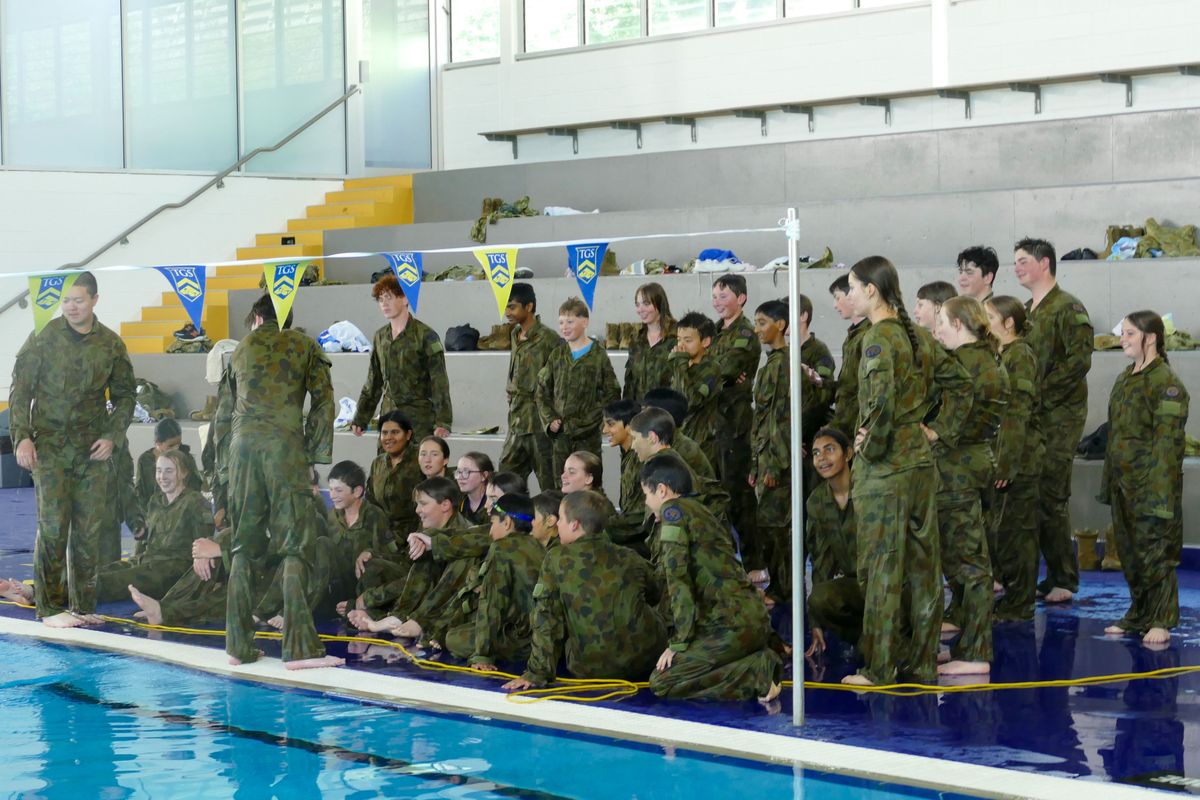 To finish off the camp, cadets were transported back to TGS and thrown in the deep end to complete their Swim Test. Fully decked out in their fatigues, all the cadets were challenged to complete a 25 metre clothed swim of our School pool and tread water for two minutes.